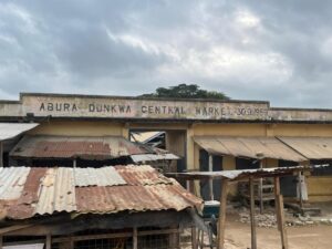 According to traders who spoke to mrwoode.com, Abura Dunkwa seat of the Abura Asebu Kwamankese (AAK) District does not have a permanent well‑planned market space. They noted that the existing market originally constructed during Dr. Kwame Nkrumah’s era in the 1960s, is now too old and far too small for today’s trading activities.